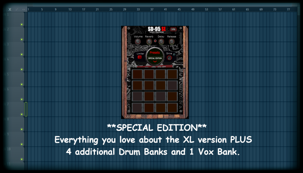 Everything you love about the XL version PLUS 4 additional Drum Banks and 1 Vox Bank.